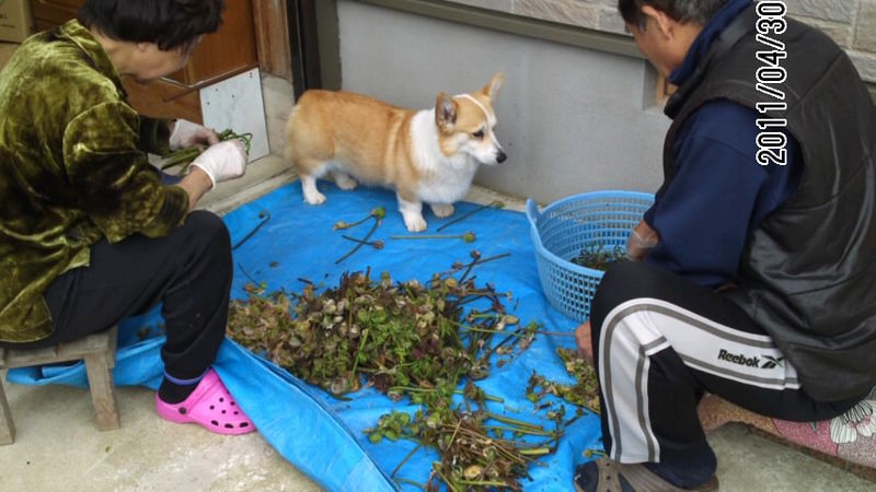 じーちゃん&ばーちゃんが今朝採りにいったゼンマイの処理をしてるから