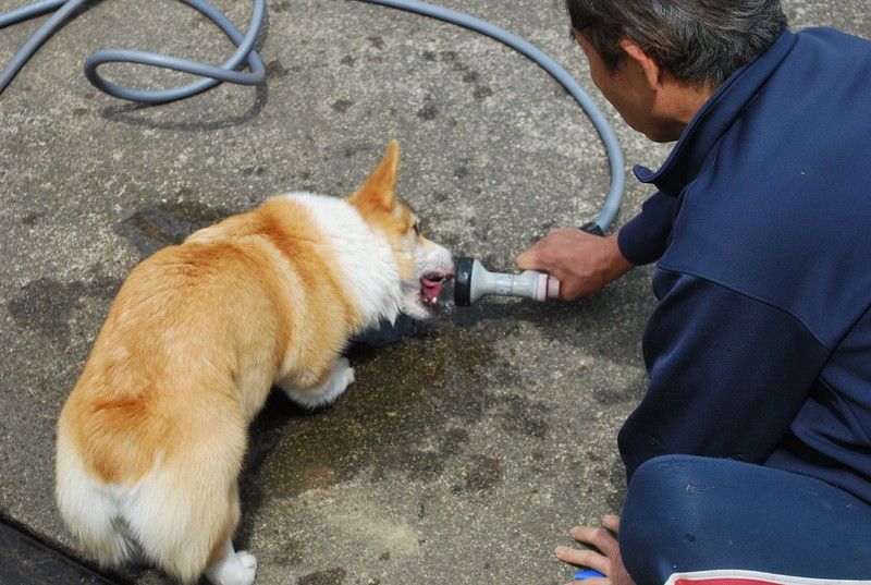 早朝は、まだ肌寒いものの、花さんの水遊びは“日課”となっています。