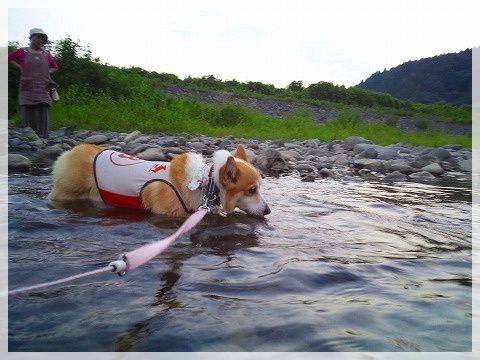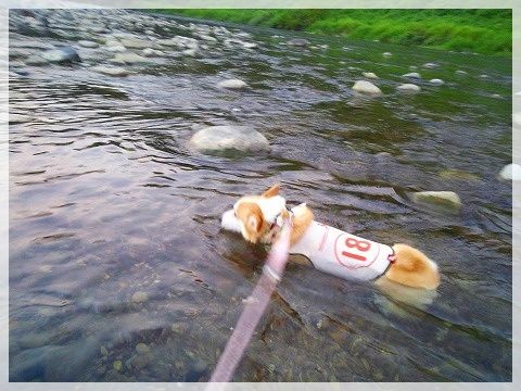 (川へ行くときは汚れ対策のためクールベスト着用)