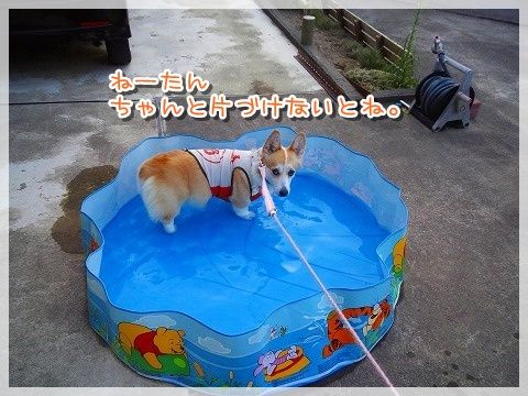 午前中、遊んでいて放置されたままのプールにIN・・・