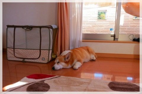 花さんのサークルのとなりにチャチャのクレートを設置。