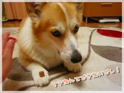 どうも、手に乗せると、いつものようにマテできないようなので、