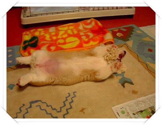 いつもの特等席をルンバにとられながらも、まったりお昼寝タイム