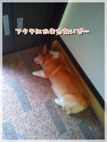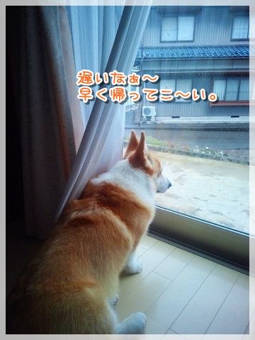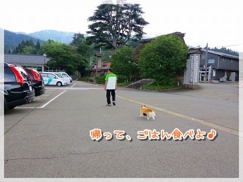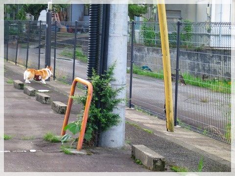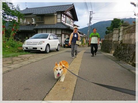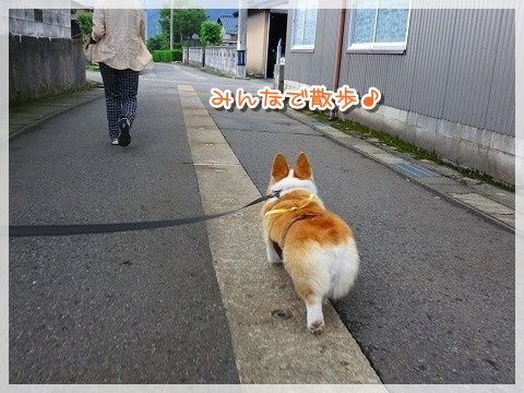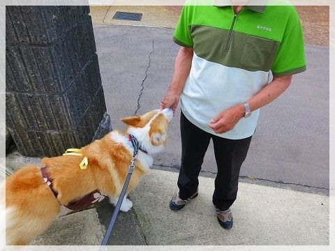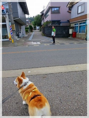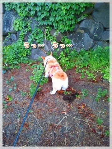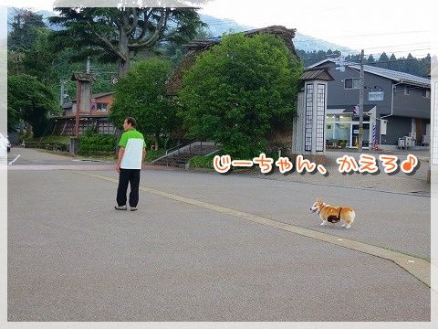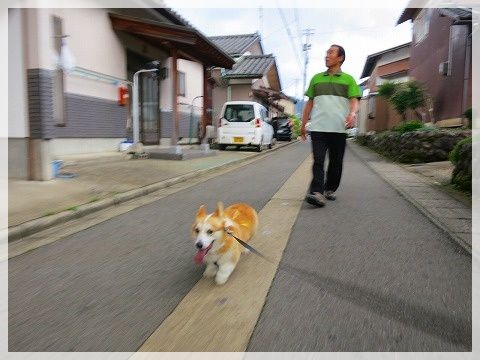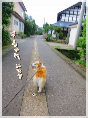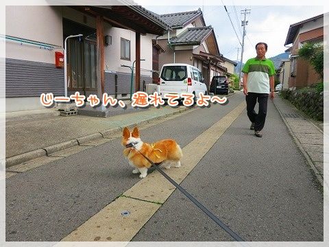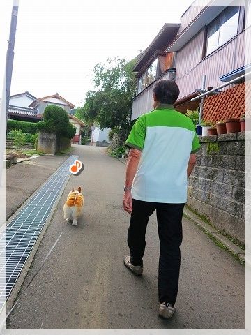 道路に出ると危ないので、じーちゃんが先に行かないうちにリード装着。
