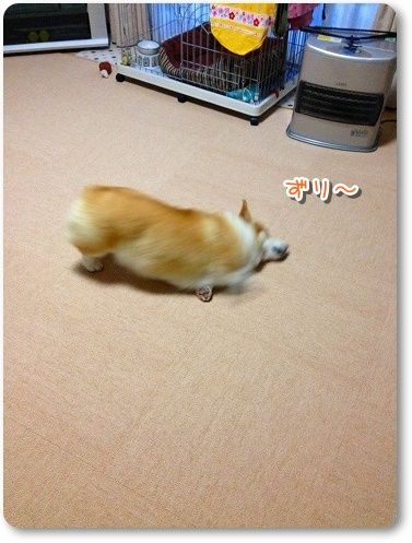 手足を洗って家に入ると、濡れた体をカーペットでスリスリ~