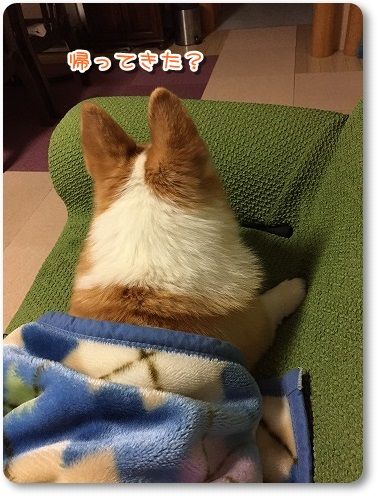 昨夜も、ジジババのベッドで寝ながらお留守番。