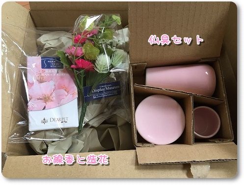 控えめな3点セットにし、お線香立ては私が持ってたもので代用しました。