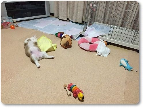 朝一は、チッコの失敗が多いようで、今朝はサークルから出したら、
