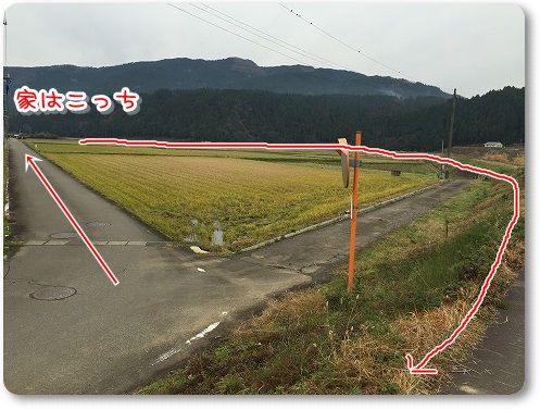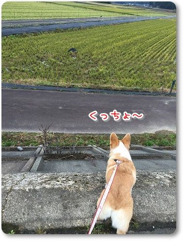 やっと、誰もいない、車も通らない田んぼ道にきて、散歩も後半へ~