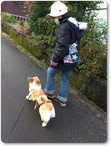 雲行きが怪しそうだったので、ばーちゃんから早めの夕さんぽのお誘い。