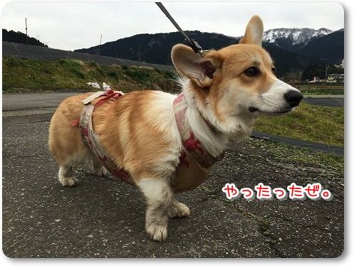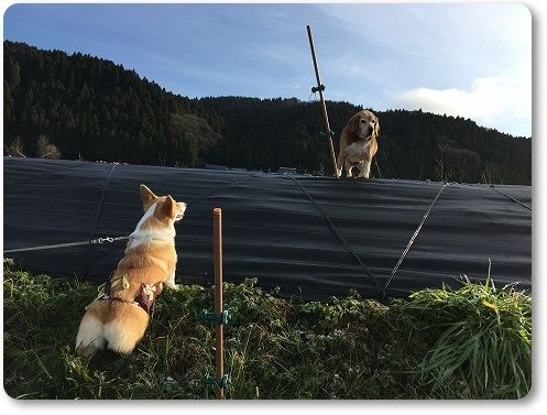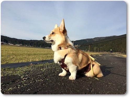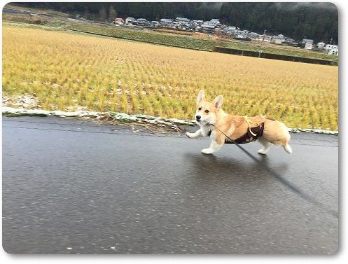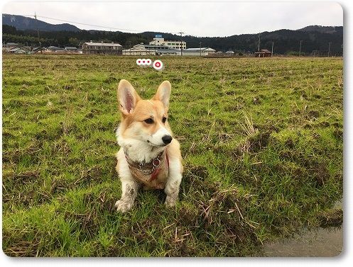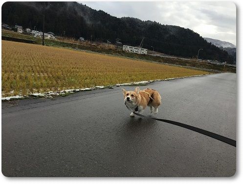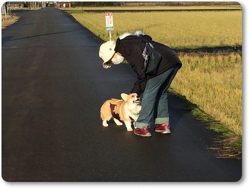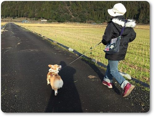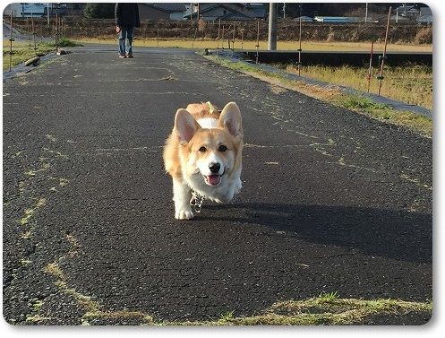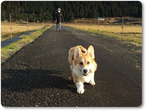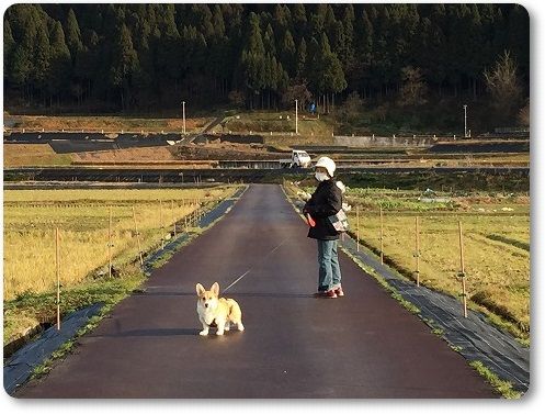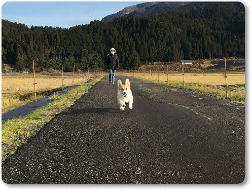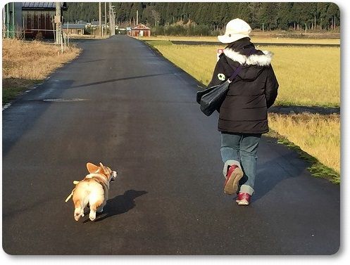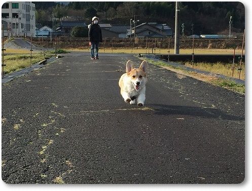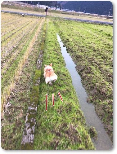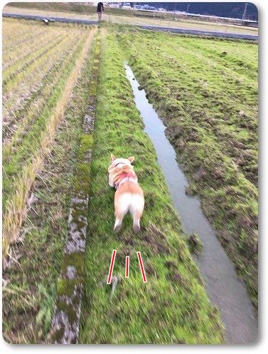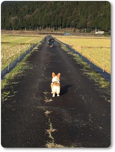 田んぼ道で、ばーちゃんに追いつけ~とリードを離したら。。。