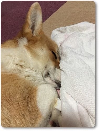 疲れたのか、タオルの中で爆睡
