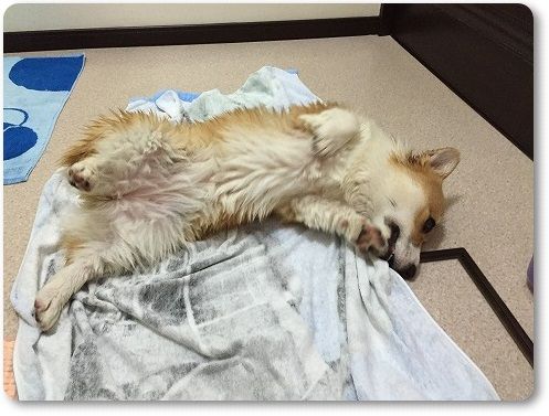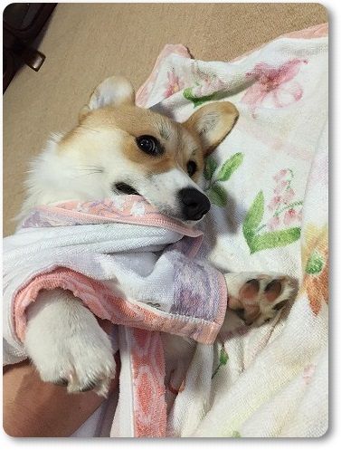 居間でもタオルドライ。