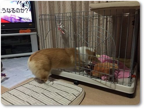 居間にいったら、サークルにかけてあったタオルケットをどけて、