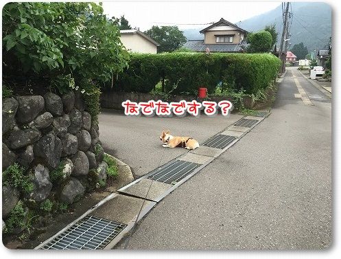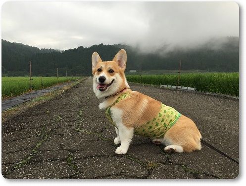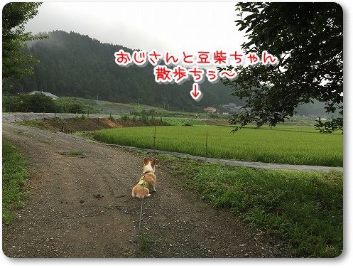 田んぼ道で豆柴ちゃん発見