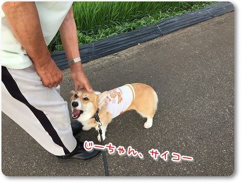 豆柴ちゃんも気になって歩かないらしく、途中から、おじさん抱っこで歩いてました。