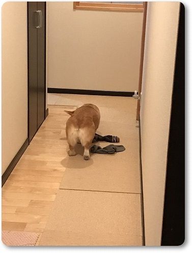 朝のお見送りは、じーちゃんのくっさい靴下ともに。。。