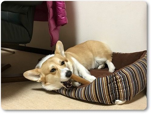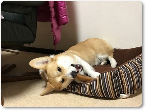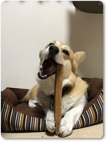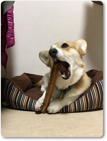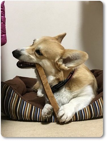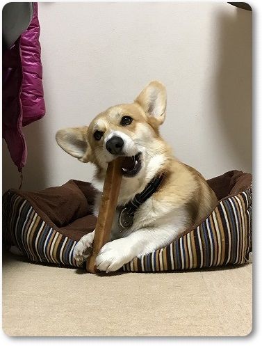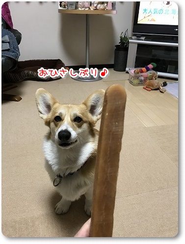 同僚宅の豆柴こたろうに1本お裾分けしました。