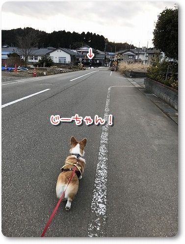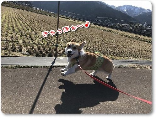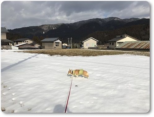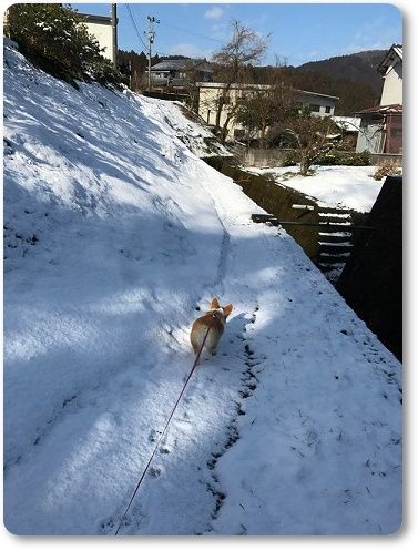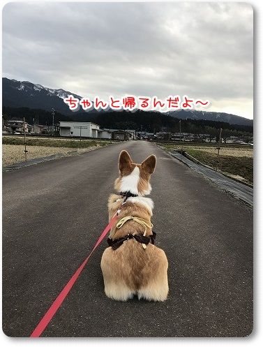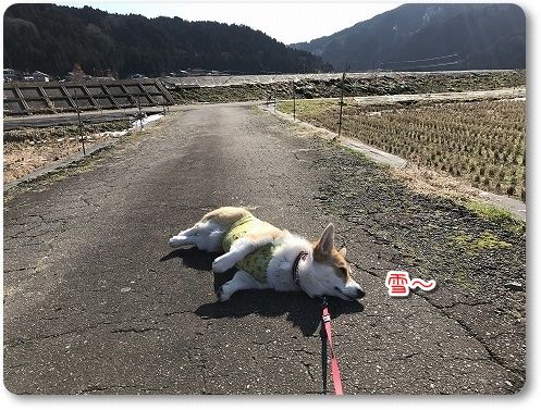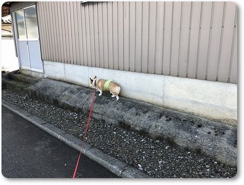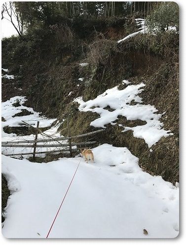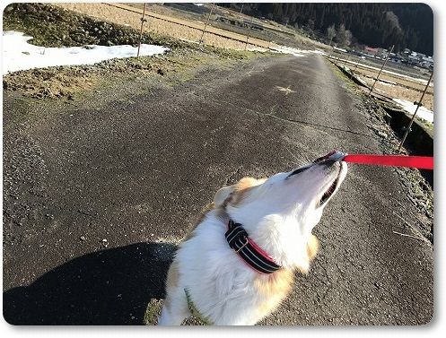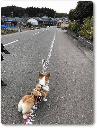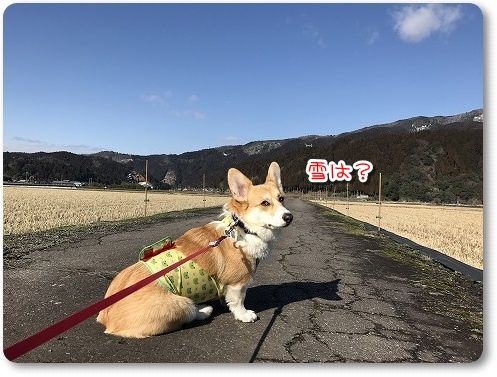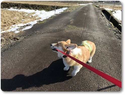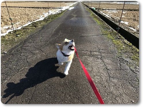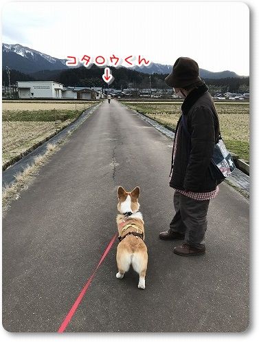 田んぼ道でコタロウくん(ミニシュナ)を発見し、途中まで一緒にお散歩