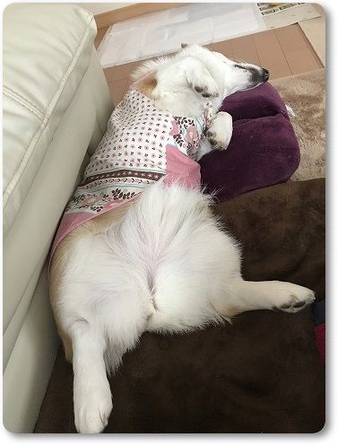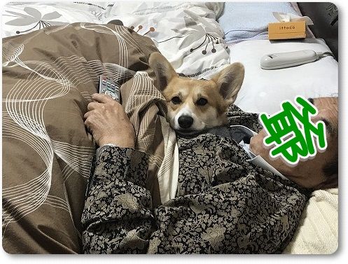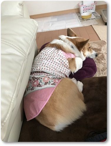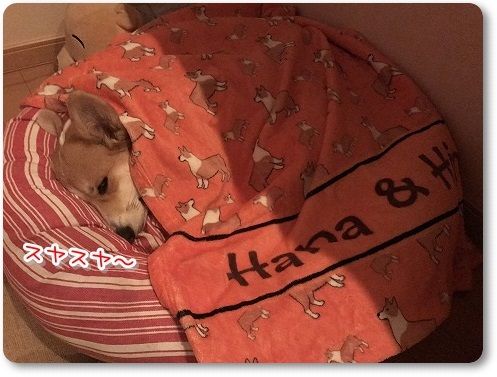 寝る前に、ハーフケットをかけてあげて、私も就寝
