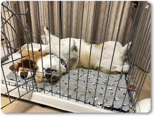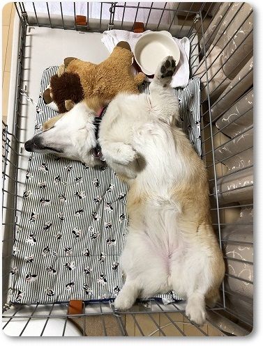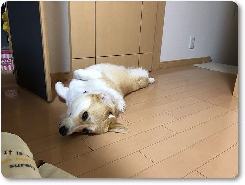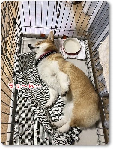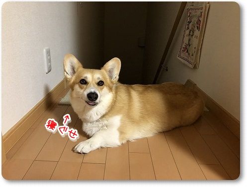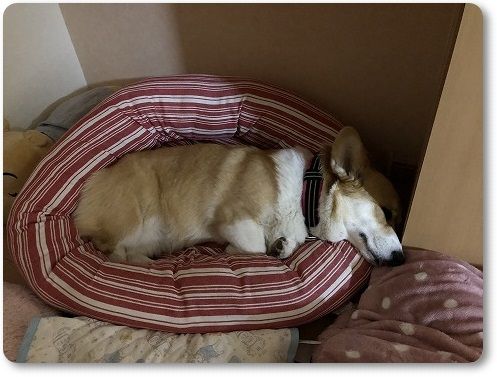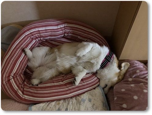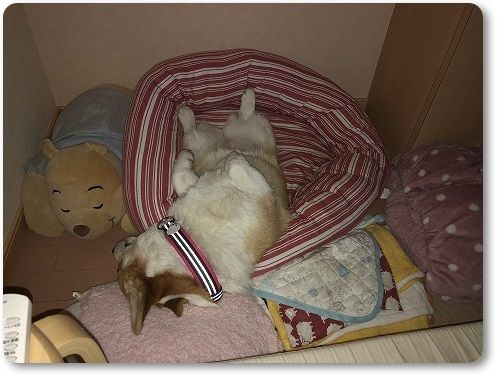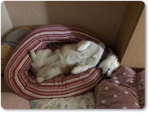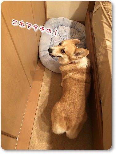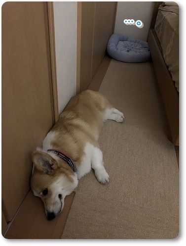 夜、いつも寝てる場所にベッドを置いてあげたのに…