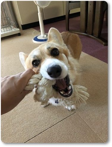 散歩から帰ると、今度はロープ遊び