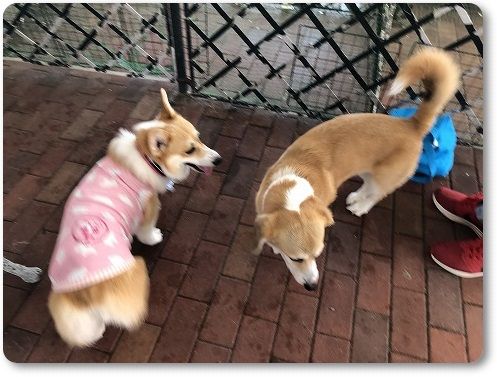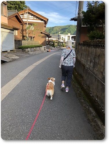 朝んぽ途中、ごあいさつしてバイバイしたコタロウ(ミニシュナ)を見送る陽菜ちゃん。
