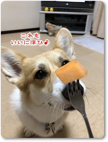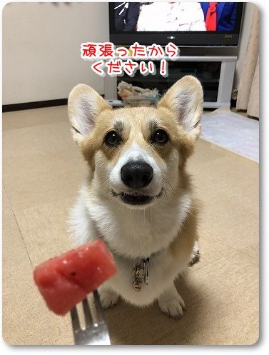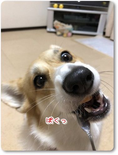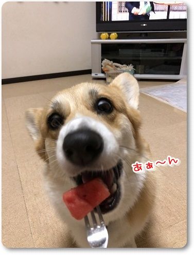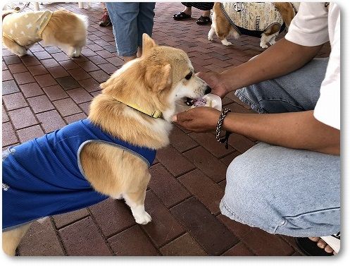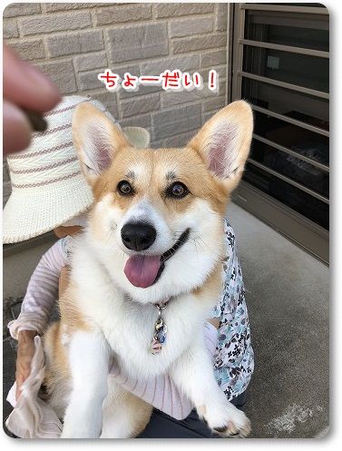 オヤツをもらってニッコニコ