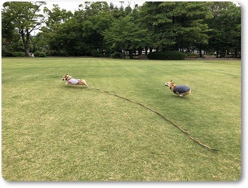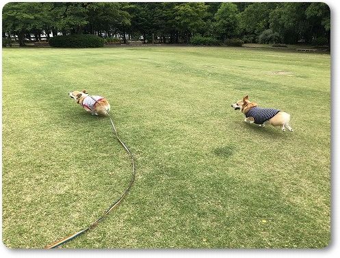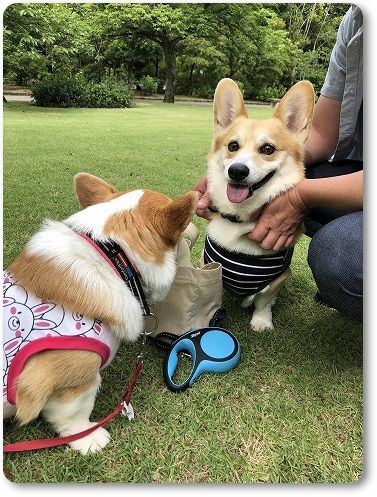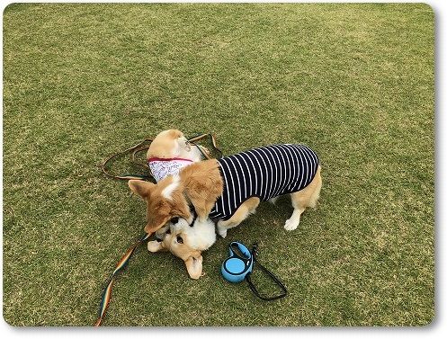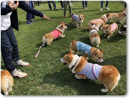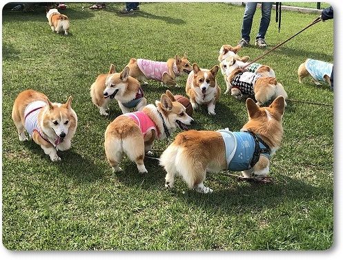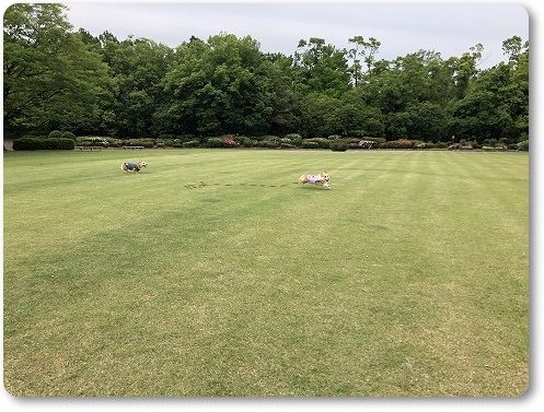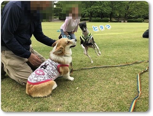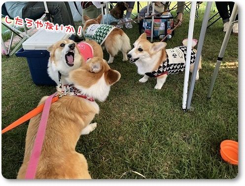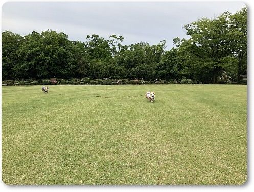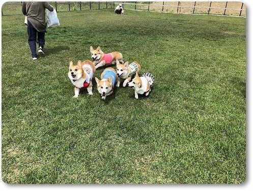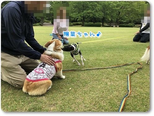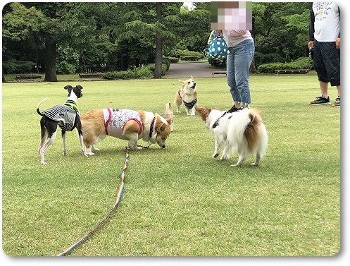 いつもの広場に行くと、すでに異種ワンコの集会が