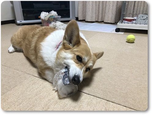 ^^;ロジャーパパからもらった氷をバリバリ食べてる二人