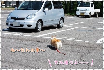 駐車場に着くと、車を探す花さん。