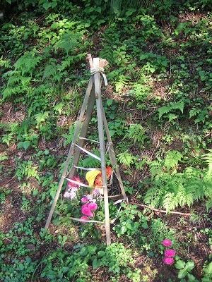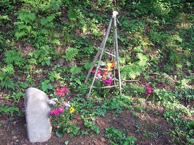 蘭丸くん(MIX)のお墓。右端に小さいお花があるとこはハムスター