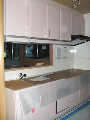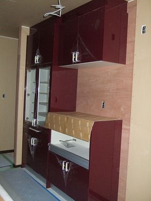 先週末にカップボードとシステムキッチンが入りました